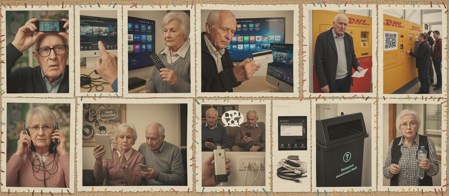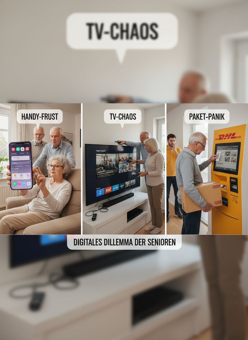 Viele Senioren/Rentner fühlen sich im digitalen Alltag überfordert, weil Technik sich ständig verändert und neue Geräte oft kompliziert erscheinen.